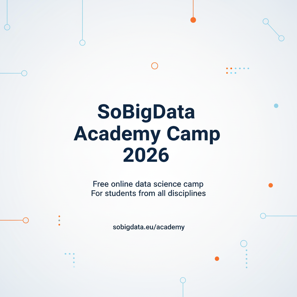 We invite your organization to share the SoBigData Academy Camp 2026, a two-and-a-half-month free online learning program designed to make data science accessible to students in all academic fields, from social sciences to law, humanities, and business. For more information, visit https://sobigdata.eu/academy .
